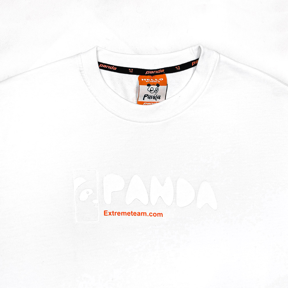 * طرح چاپ شده: لوگوی طرح PANDA به صورت فونت انگلیسی و بزرگ بر روی تیشرت چاپ شده است.
