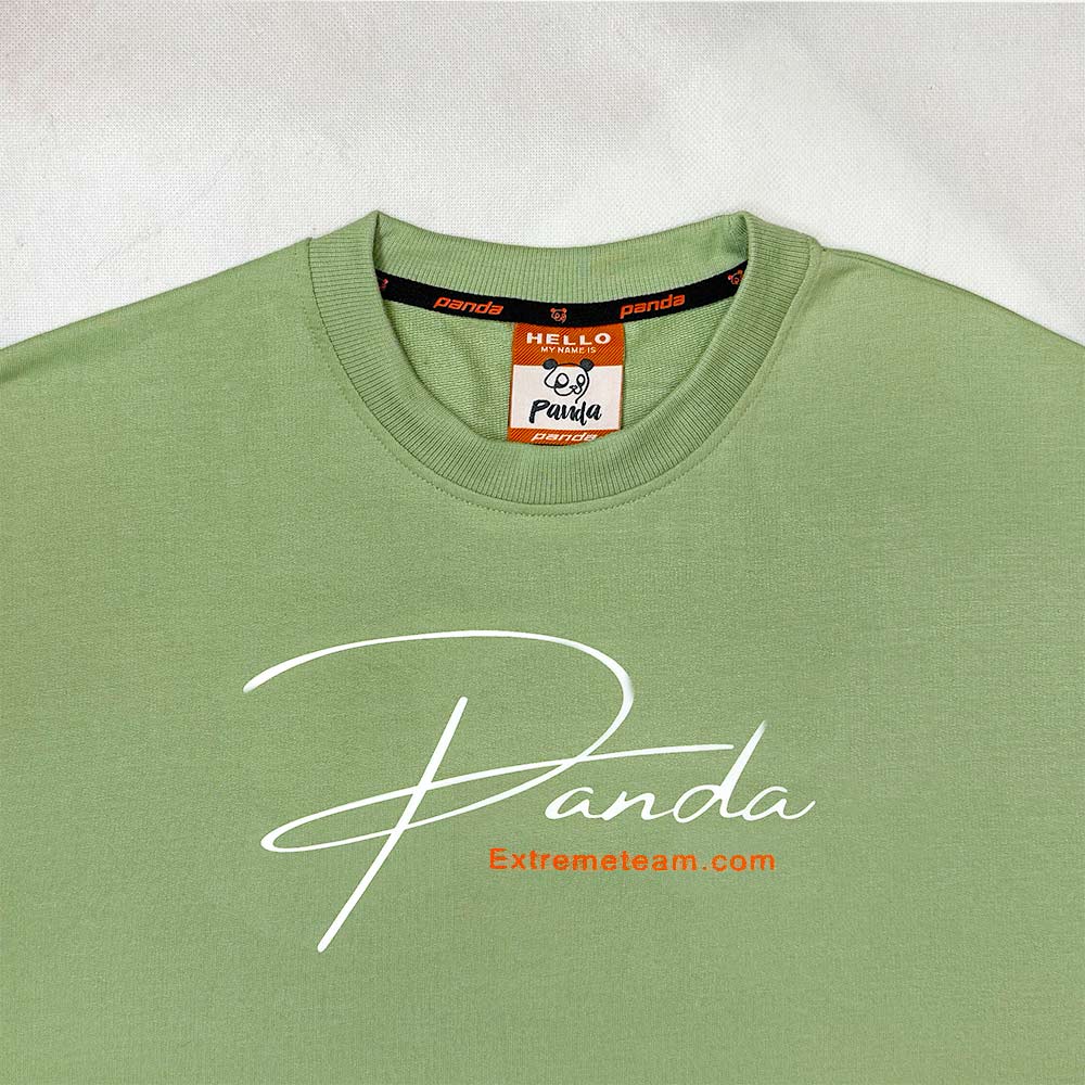 * طرح چاپ شده: لوگوی طرح PANDA به صورت فونت انگلیسی و بزرگ بر روی تیشرت چاپ شده است.