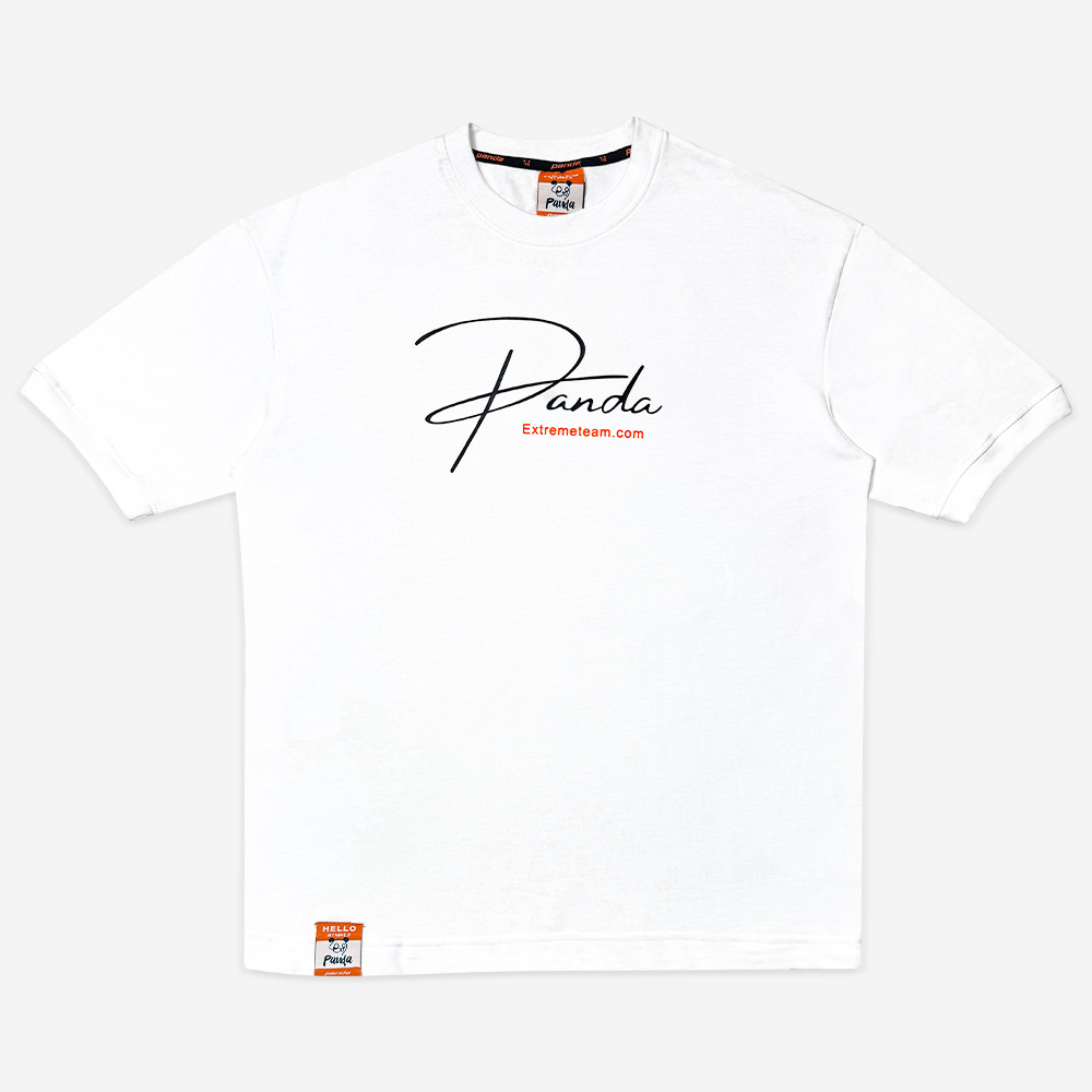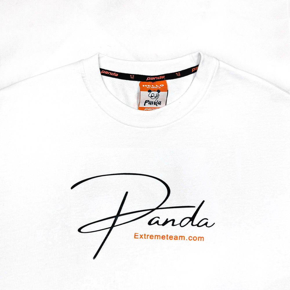 * طرح چاپ شده: لوگوی طرح PANDA به صورت فونت انگلیسی و بزرگ بر روی تیشرت چاپ شده است.