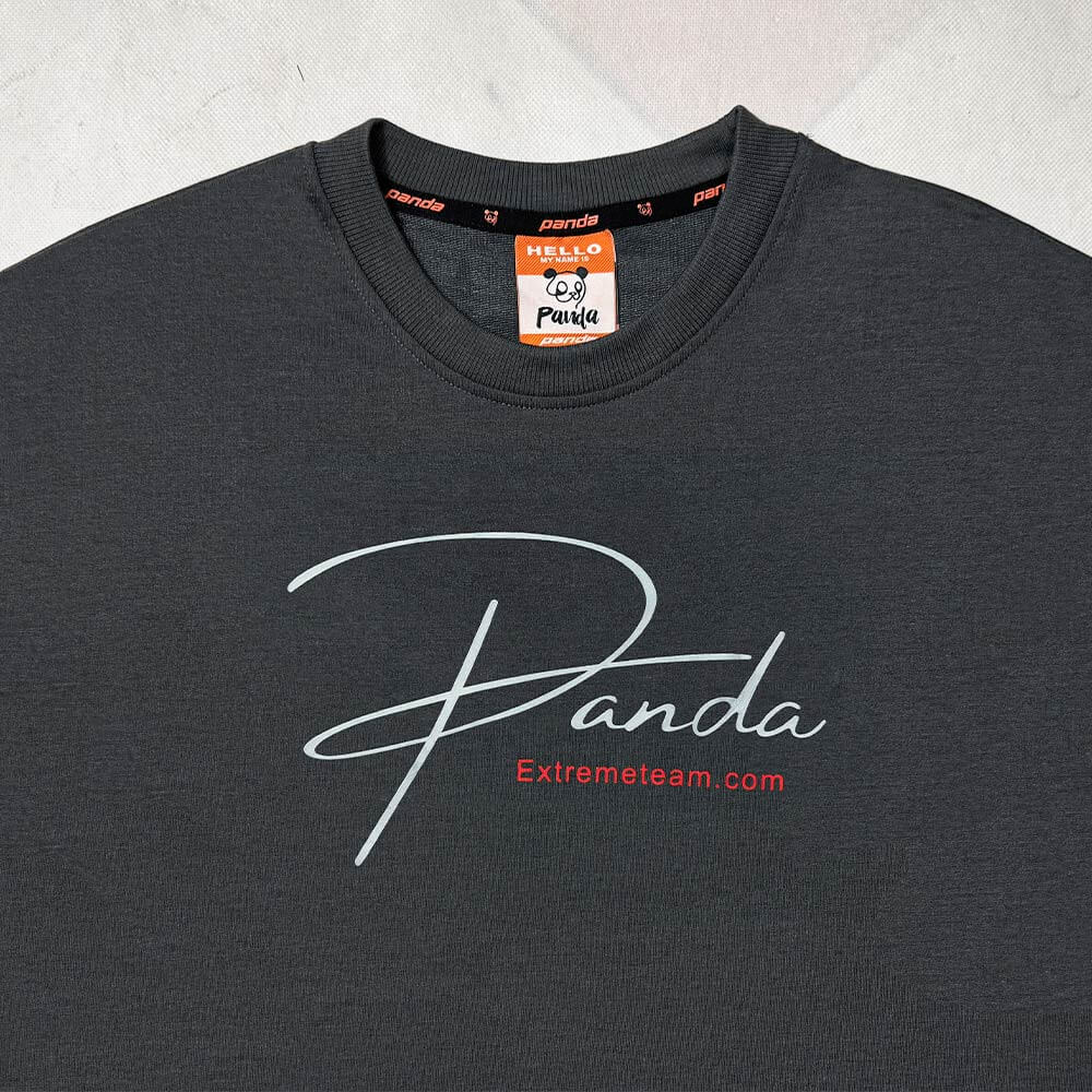 * طرح چاپ شده: لوگوی طرح PANDA به صورت فونت انگلیسی و بزرگ بر روی تیشرت چاپ شده است.