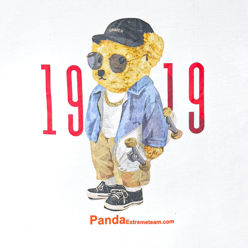 * طرح چاپ شده: لوگوی طرح PANDA به صورت فونت انگلیسی و بزرگ بر روی تیشرت چاپ شده است.