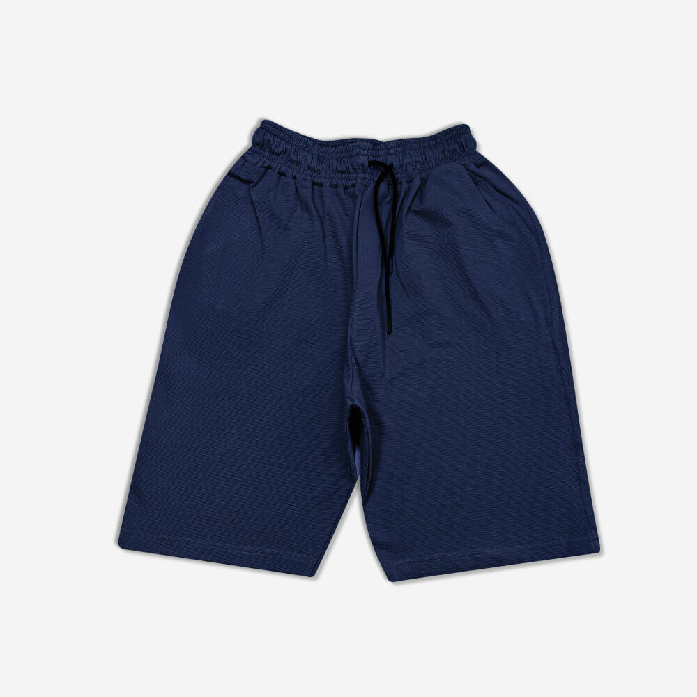 ست تیشرت یقه دار نیم زیپ و شلوارک سرمه ای 130091-2