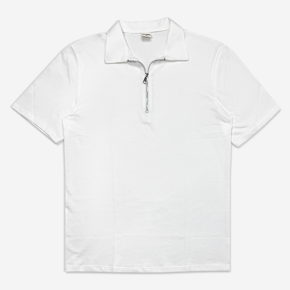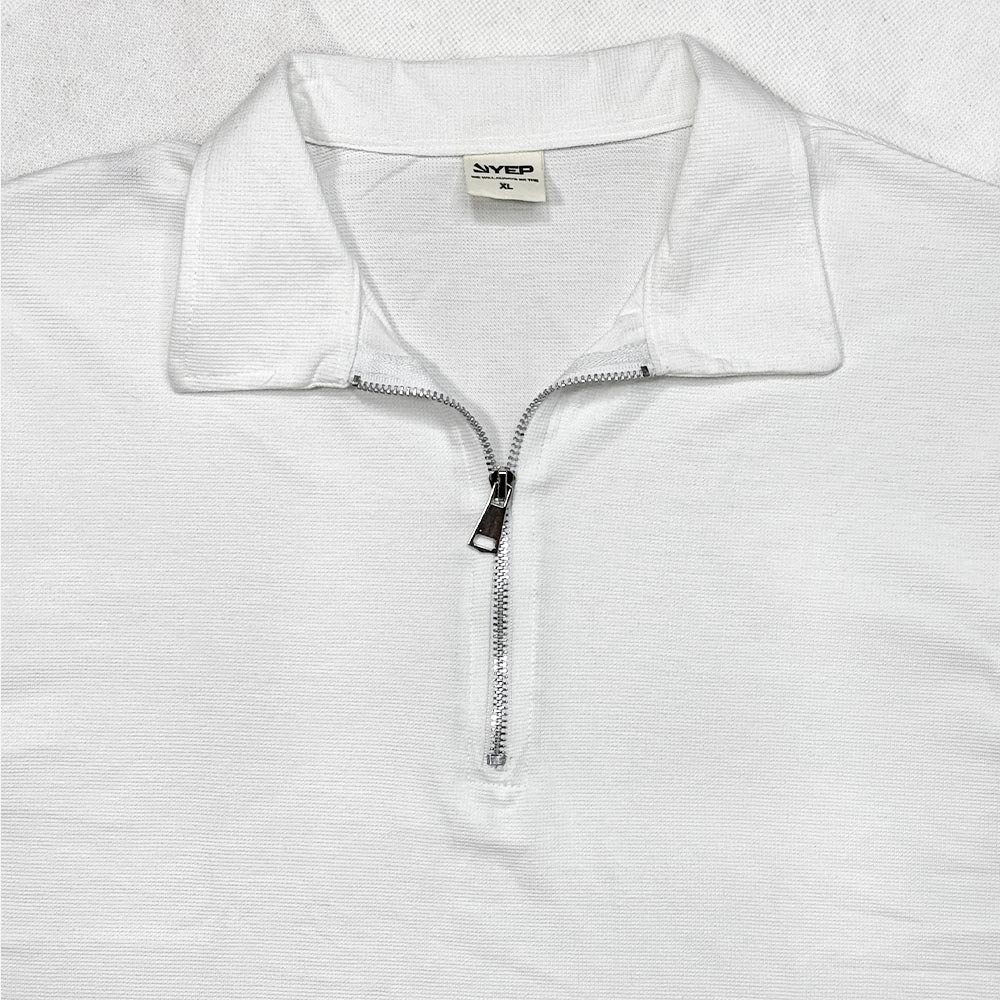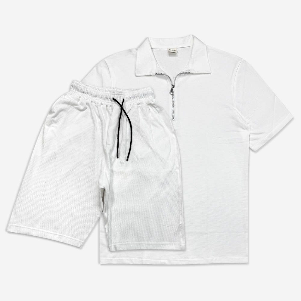 ست تیشرت یقه دار نیم زیپ و شلوارک سفید 130091-1