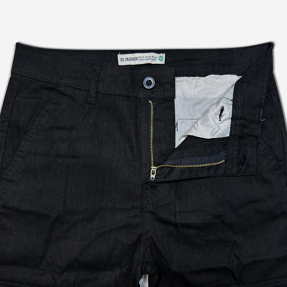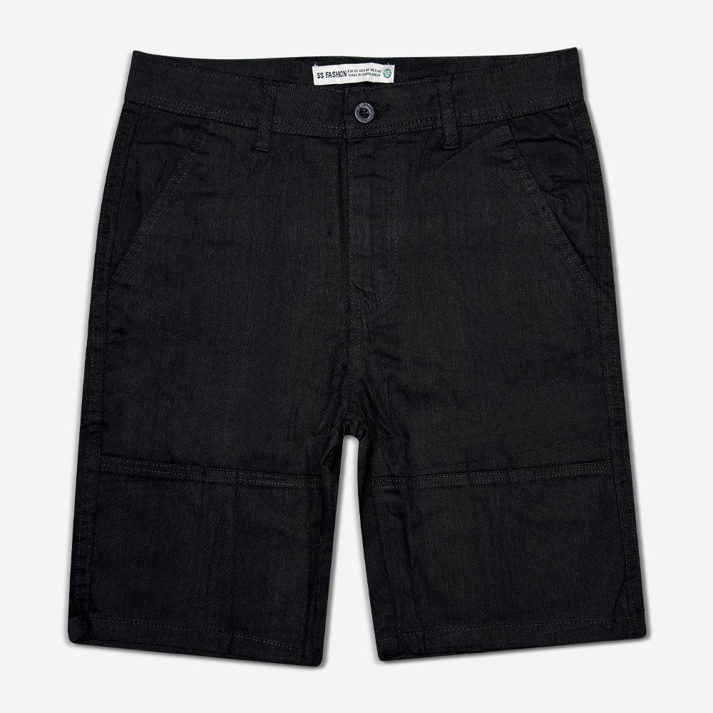 فاق این شلوارک متوسط است و با زیپ باز و بسته میشود. برای تنظیم کمر این شلوارک میتوانید کمربند ببندید. این شلوارک دو جیب جلو و دو جیب پشت دارد که جیبهای پشت آن با دکمه باز و بسته میشوند. دوخت کناره و لبههای این شلوارک به صورت دوبل است که بر استحکام و طول عمر آن میافزاید.