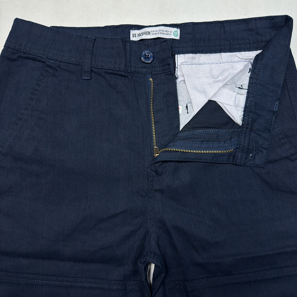 فاق این شلوارک متوسط است و با زیپ باز و بسته میشود. برای تنظیم کمر این شلوارک میتوانید کمربند ببندید. این شلوارک دو جیب جلو و دو جیب پشت دارد که جیبهای پشت آن با دکمه باز و بسته میشوند. دوخت کناره و لبههای این شلوارک به صورت دوبل است که بر استحکام و طول عمر آن میافزاید.