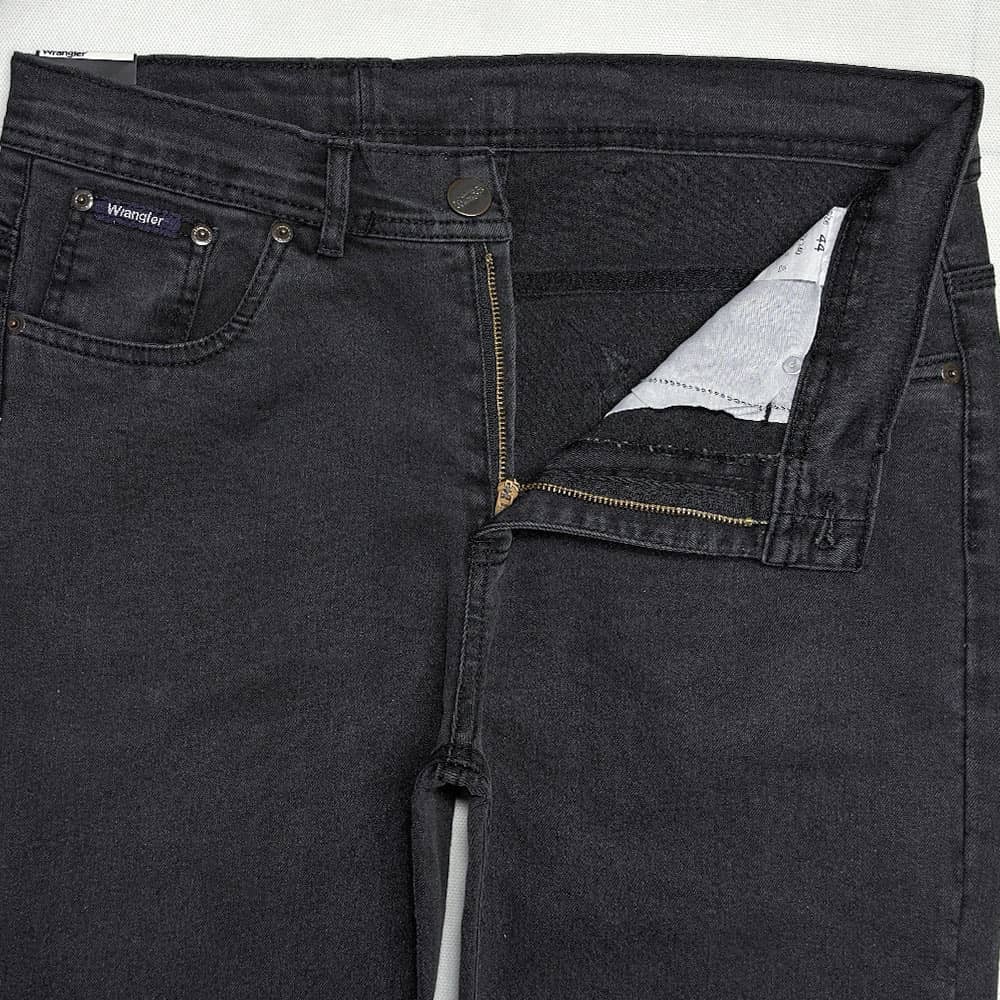 شلوار Wrangler سایز بزرگ دو جیب تخم مرغی جلو و دو جیب پاکتی در پشت دارد و روی شلوار هیچ طرحی نیست. فاق این شلوار با زیپ باز و بسته میشود و پارچه به کار رفته در آن خاصیت کشسانی ندارد.