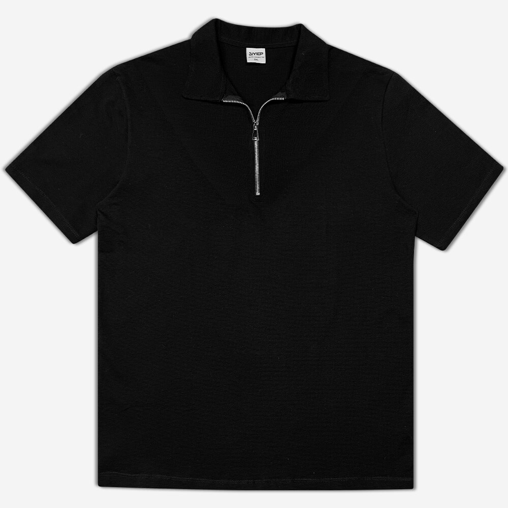 پولوشرت نیم زیپ مردانه مشکی 1220179-1