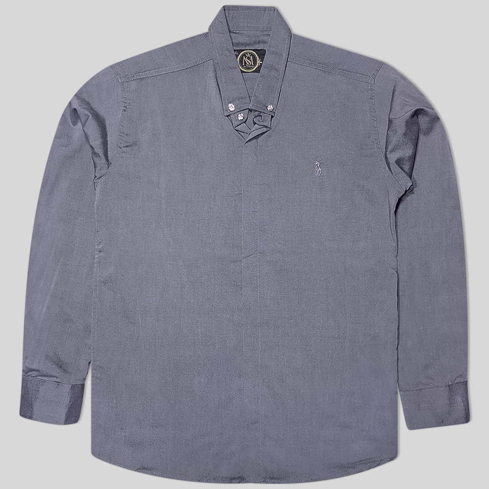 این پیراهن ساتن رامی ساده میباشد و فقط یک گلدوزی ساده روی سینه پیراهن دوخته شده است . یقه این پیراهن ساتن از نوع برگردان میباشد که با یک دکمه به بدنه پیراهن متصل میشود . بزرگترین ویژگی این پیراهن دکمه مخفی بودن آن است . پیراهن ساتن رامی دکمه مخفی در بین تمام پیراهن ساتن رامی ها پرطرفدار تر است زیرا مخفی بودن دکمه بسیار پیراهن شیک میکند . مخفی شدن دکمه به زیبایی پیراهن ساتن بسیار اضافه میکند زیرا پیراهن یک دست میشود و دکمه ها مشخص نیست . سر آستین این پیراهن ساتن رامی دارای دکمه است که میتوان از آن برای بالا زدن آستین و بستن سرآستین استفاده کرد.