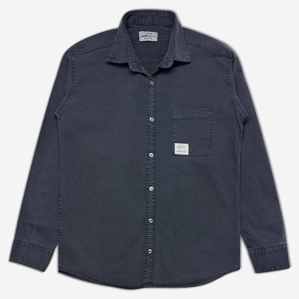 پیراهن لی آستین بلند تک جیب دودی 1240193-3