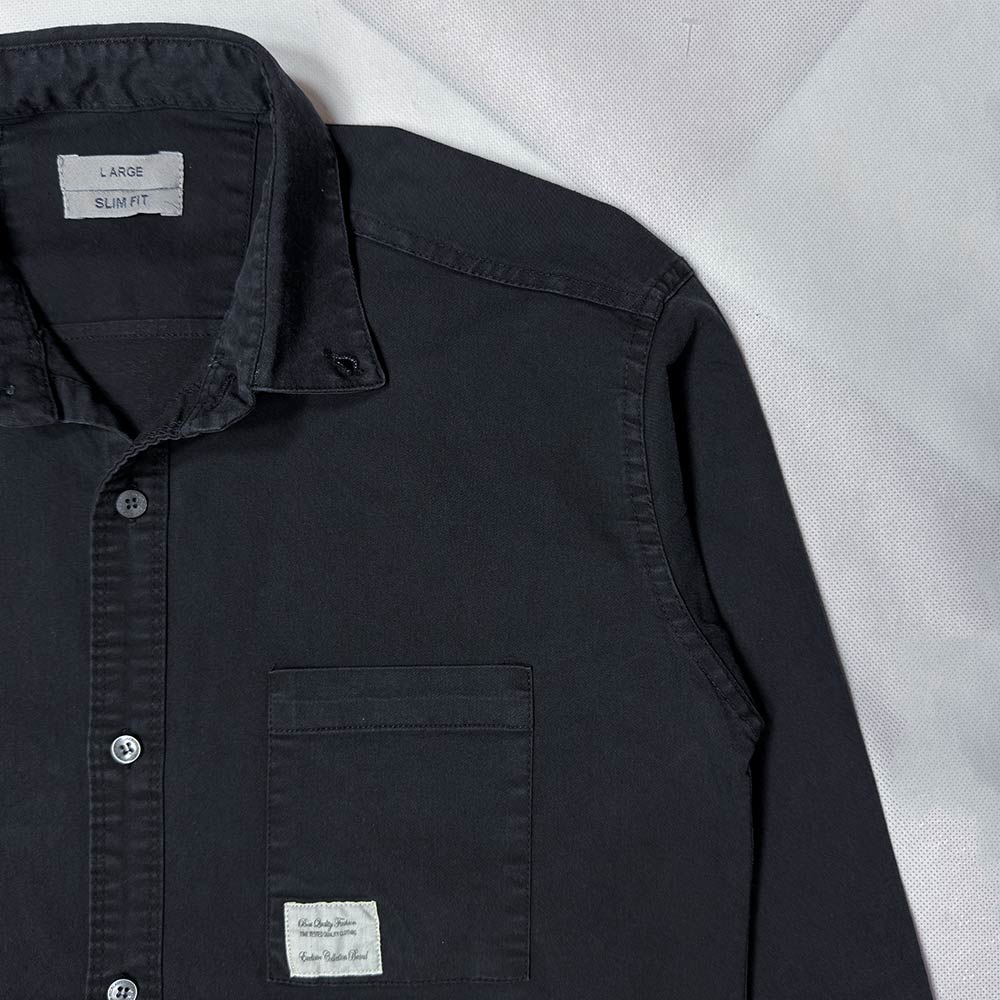 پیراهن لی آستین بلند تک جیب ذغالی 1240193-1