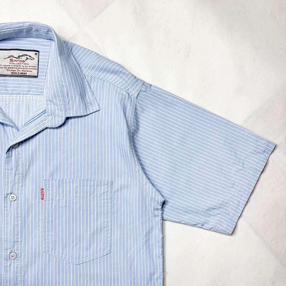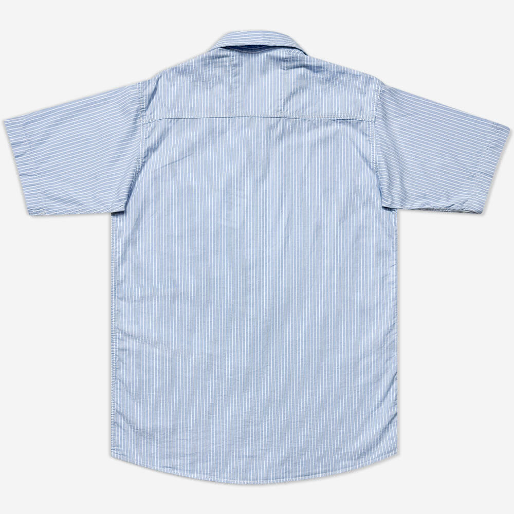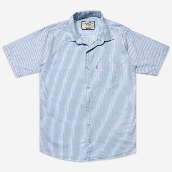 پیراهن نخی راه راه آستین کوتاه تک جیب آبی 1240260-1