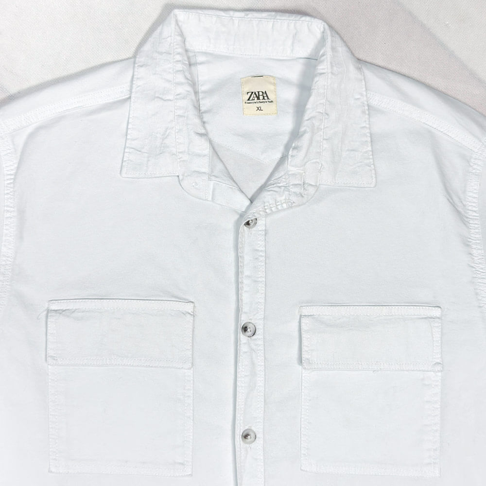 پیراهن کتان دو جیب سفید