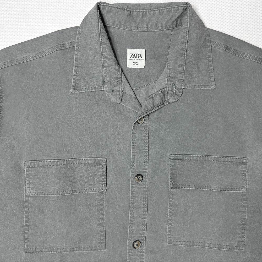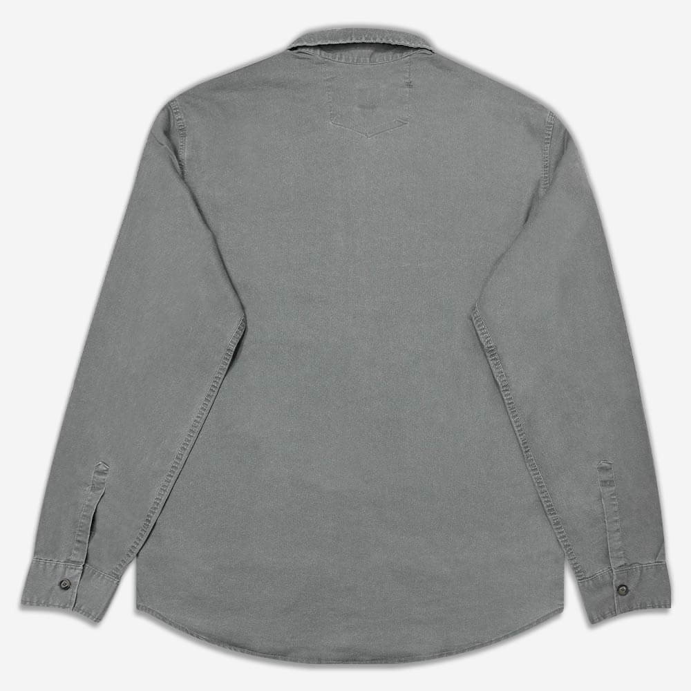 پیراهن کتان دو جیب آستین بلند رنگ طوسی 1240247-5