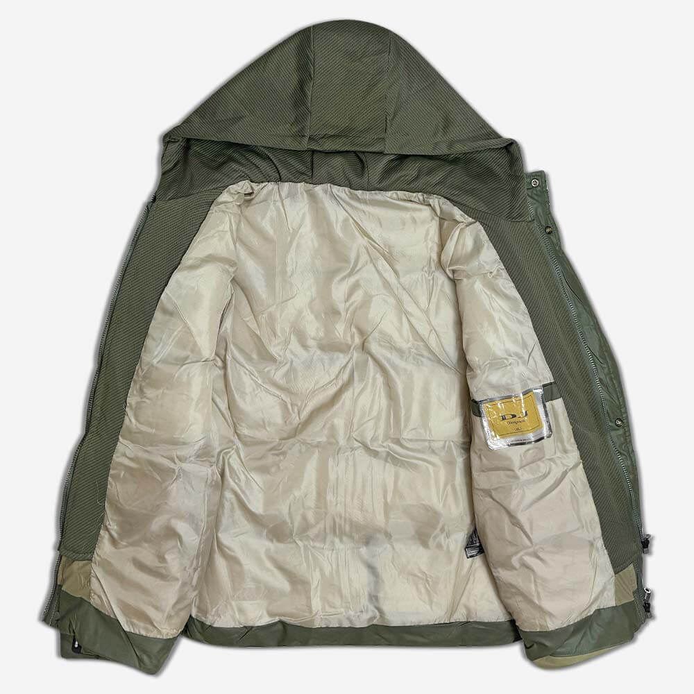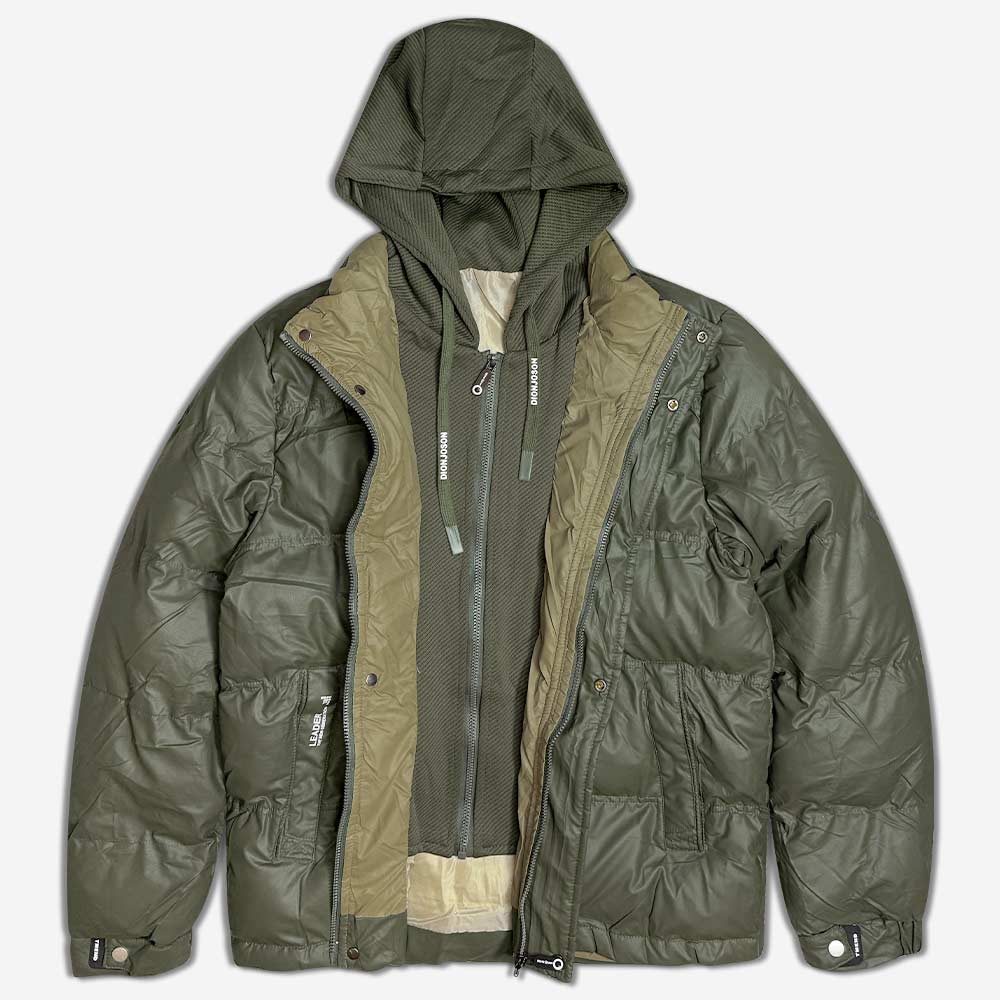 این کاپشن با دوخت درشت که رویی شمعی مخصوص و با کیفیت تهیه شده است، جذابیت بصری بالایی دارد. لایه زیری این کاپشن یشمی، زیپی به سبک سوییشرتی است که با رنگ متضاد (سبز تیره ) خود، جلوهای خاص به آن بخشیده است. کاپشن بادی DJ یشمی دارای کلاهی سراسری است که از همان رنگ و پارچه زیپ داخلی ساخته شده و به شکلی دقیق جاگذاری شده است.